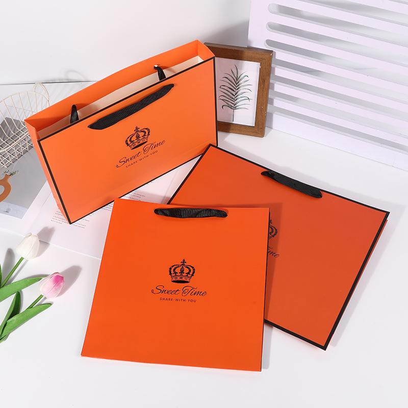 - Selling Points: In stock minimalist orange gift packaging bag large shopping bag exquisite orange clothing bag lipstick scarf gift bag