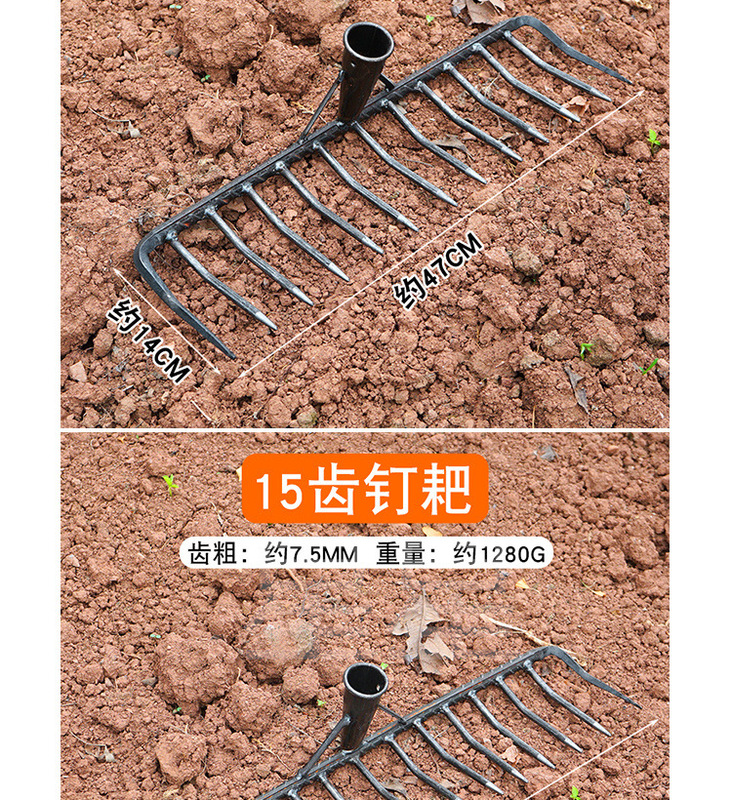 - 規格型號:圓齒釘耙15齒*+1.2米木柄(顏色隨機)*多齒*見sku*鑄鐵*見sku*見sku