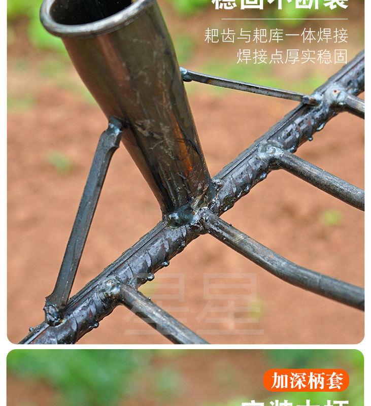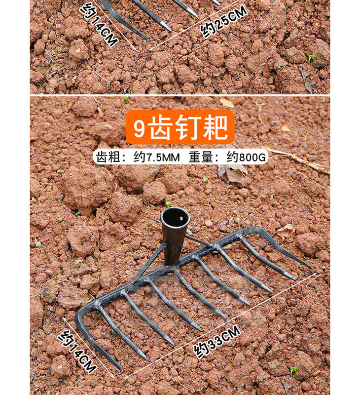 - 規格型號:圓齒釘耙9齒*+1.2米木柄(顏色隨機)*多齒*見sku*鑄鐵*見sku*見sku