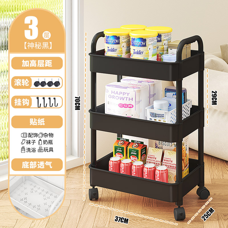 - 層數(規格):3層黑-ABS加厚【滑輪+掛鈎+貼