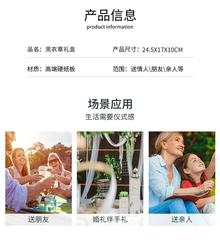 - 規格型號:薰衣草禮盒(發貨絲帶不綁);禮盒+禮袋:24.5*17*10cm