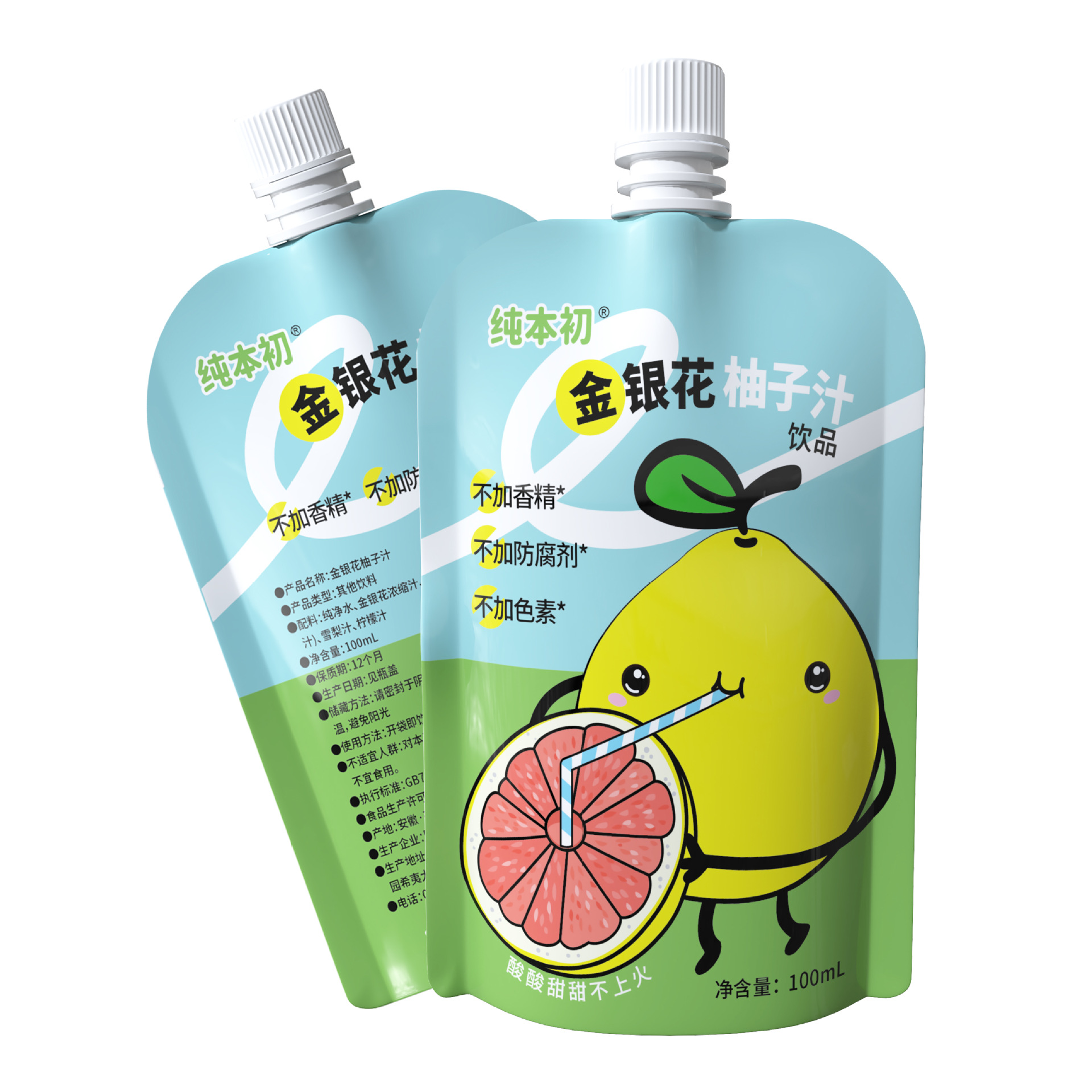 - Packaging Specification: Honeysuckle Grapefruit Juice 100ml (Pure Primary Sip-Neck Bag)