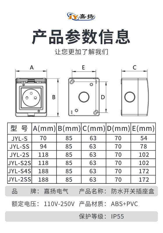 - Model: JYL-2SS Double Socket Single Pole Single Throw with Socket