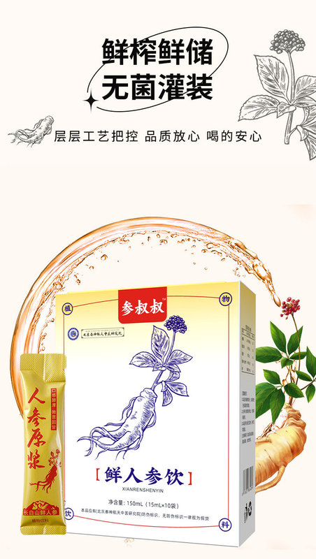 - Packaging Specification: Ginseng Pulp 120ml (10ml x 12 sticks)