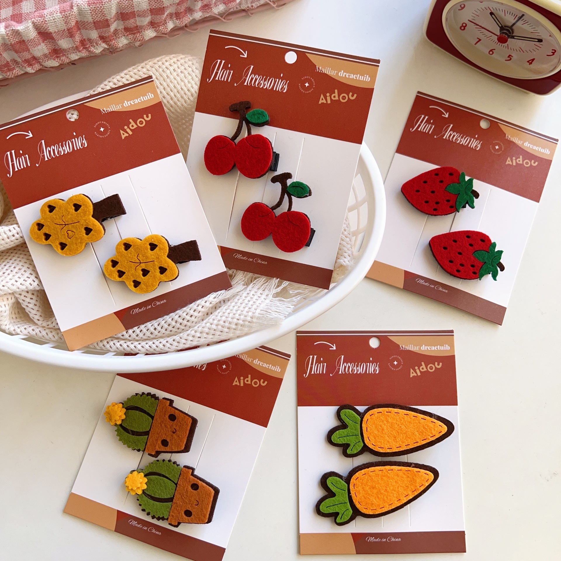- Pattern: Strawberry, Cherry, Cactus, Carrot, Small Tree