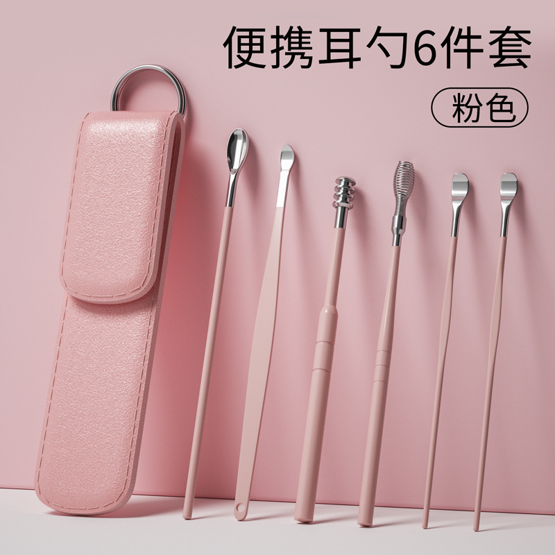 - Specifications: Leather Peach Powder-6-piece set of portable ear spoons