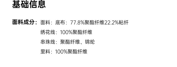 - Main fabric composition: polyester fiber