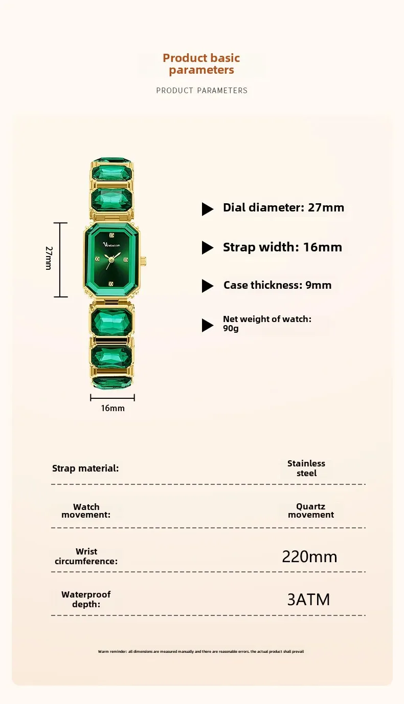 - 錶盤形狀:方形