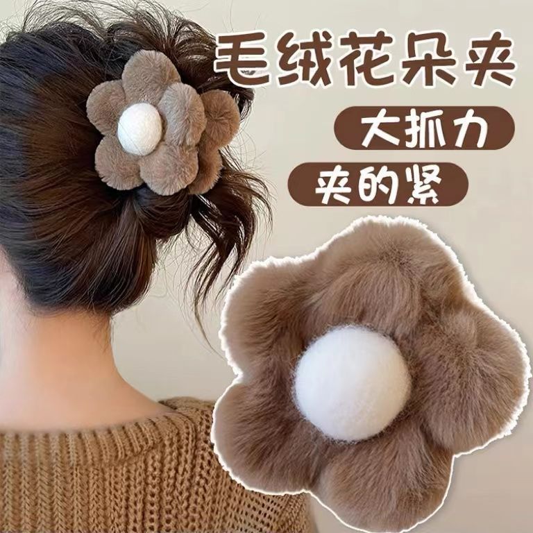 - 樣式:秋冬花朵毛絨抓夾