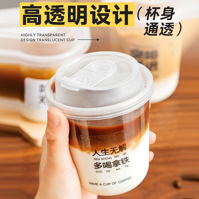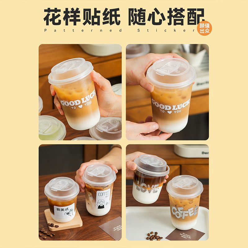 - Specification model: 470ml U-shaped coffee cup + White text transparent sticker - 100 sets (with straight drinking lid)