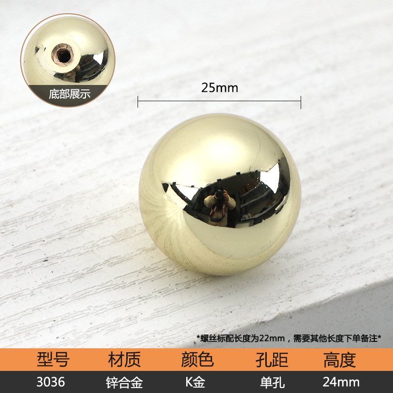 - Specification: Round Ball 3036 Gold - Single Hole