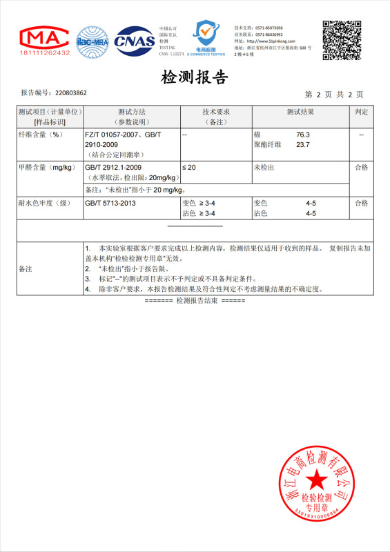 - 主面料成分含量:80