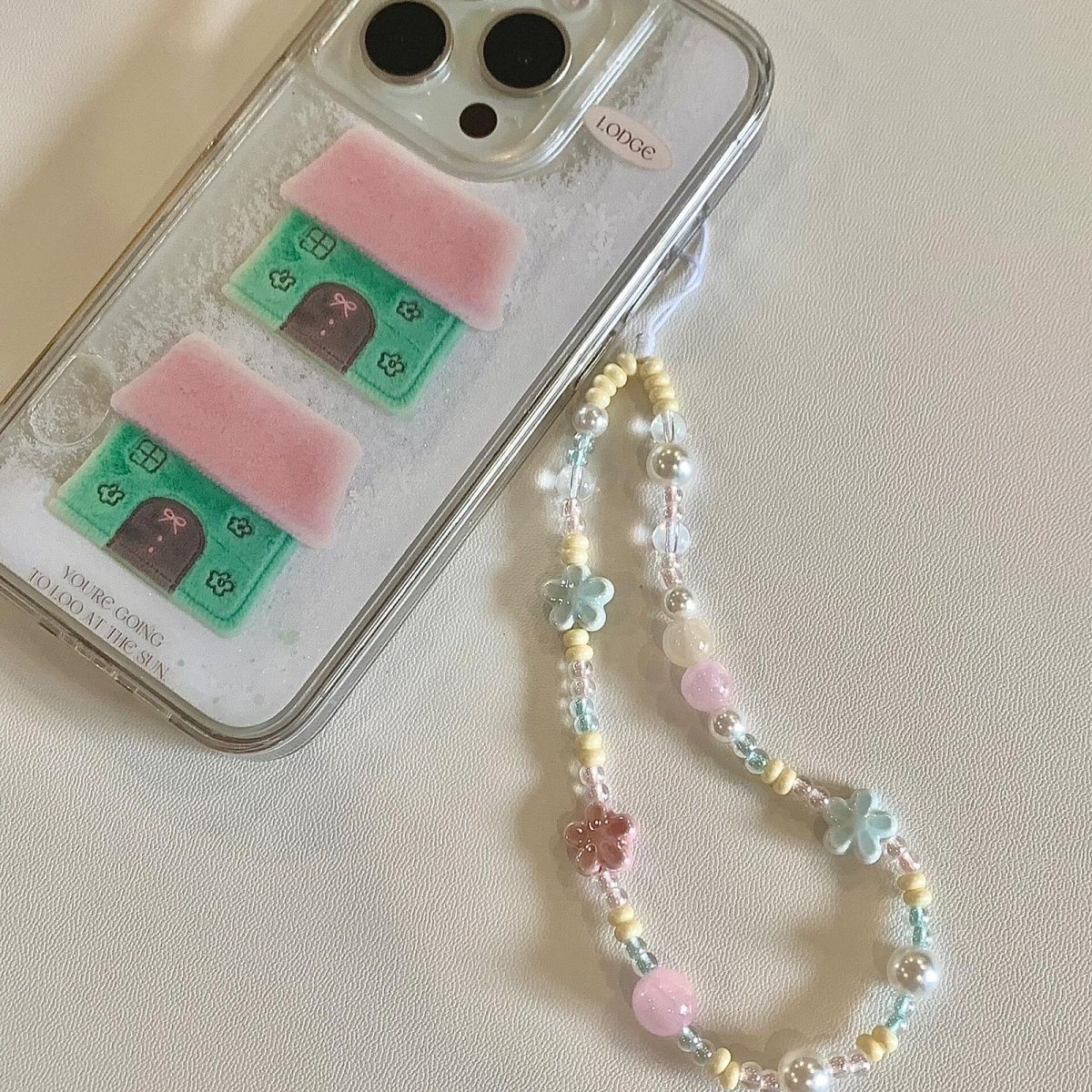- 規格:粉藍色小花朵串珠掛繩