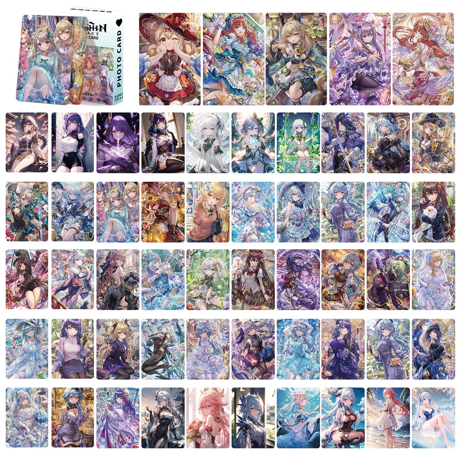 - Style: Genshin Impact Female Character Laser Mini Card 56 Pieces