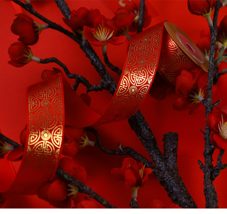 - 規格型號:2.5cm紅結燙金福結絲帶*5米/卷