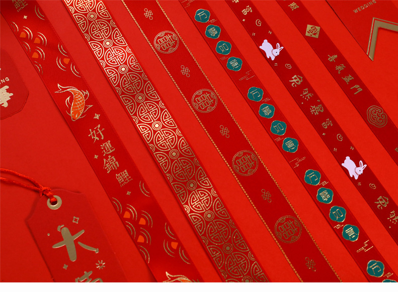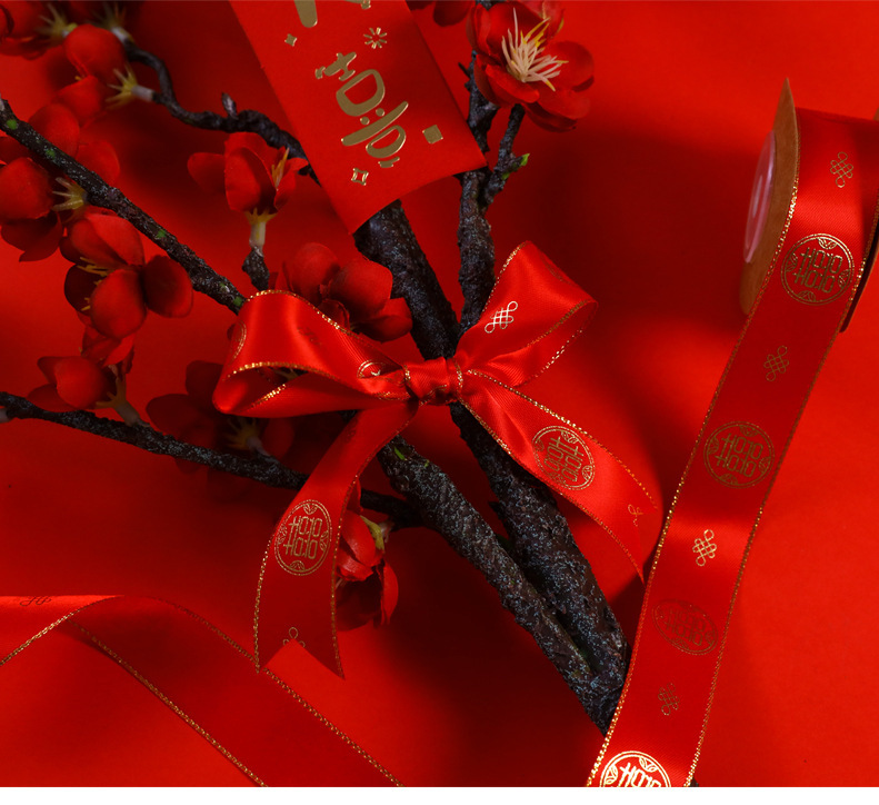 - 規格型號:1.6cm喜氣盈門絲帶*5米/卷