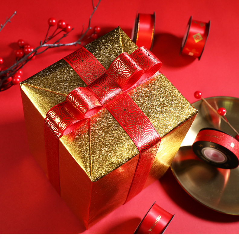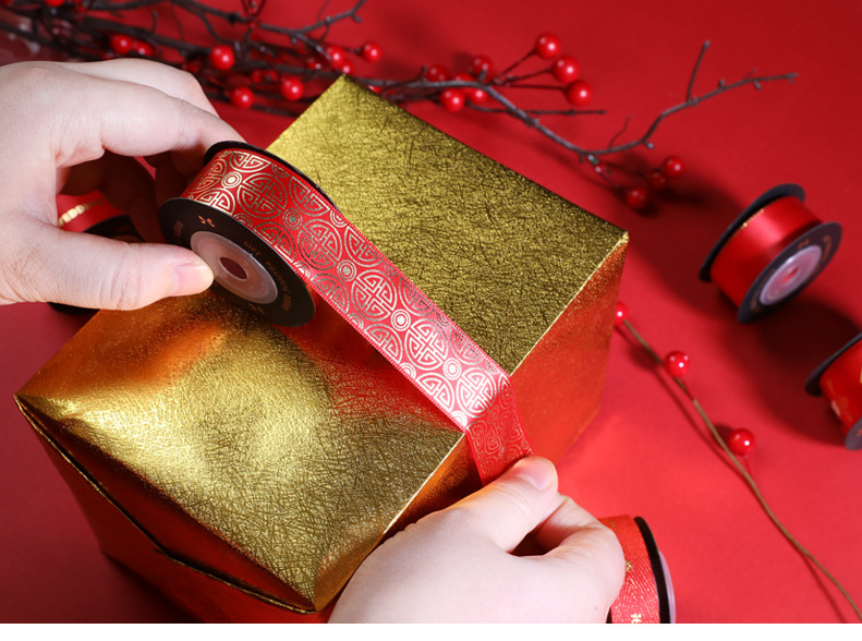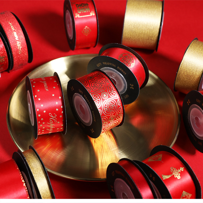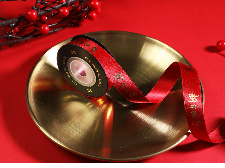 - 規格型號:1.6cm紅螺紋金邊HNY禮物絲帶*5米/卷