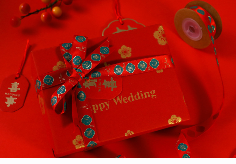 - 規格型號:2.5cm喜字紅正方喜絲帶*5米/卷