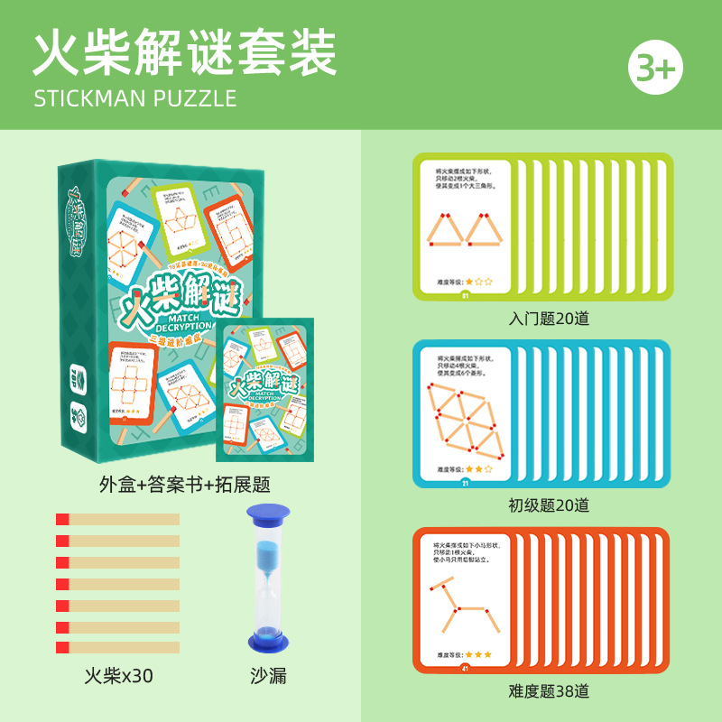 - 規格:火柴解謎套裝(39張卡牌+30根火柴棒)