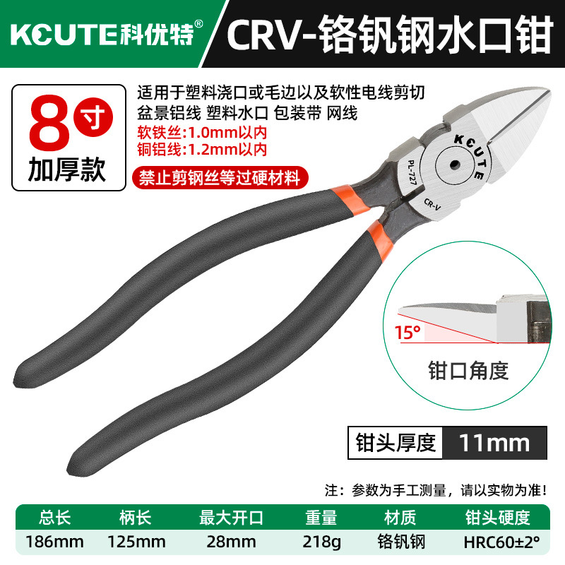 - 型號:升級版鉻釩鋼【8寸厚款】水口鉗