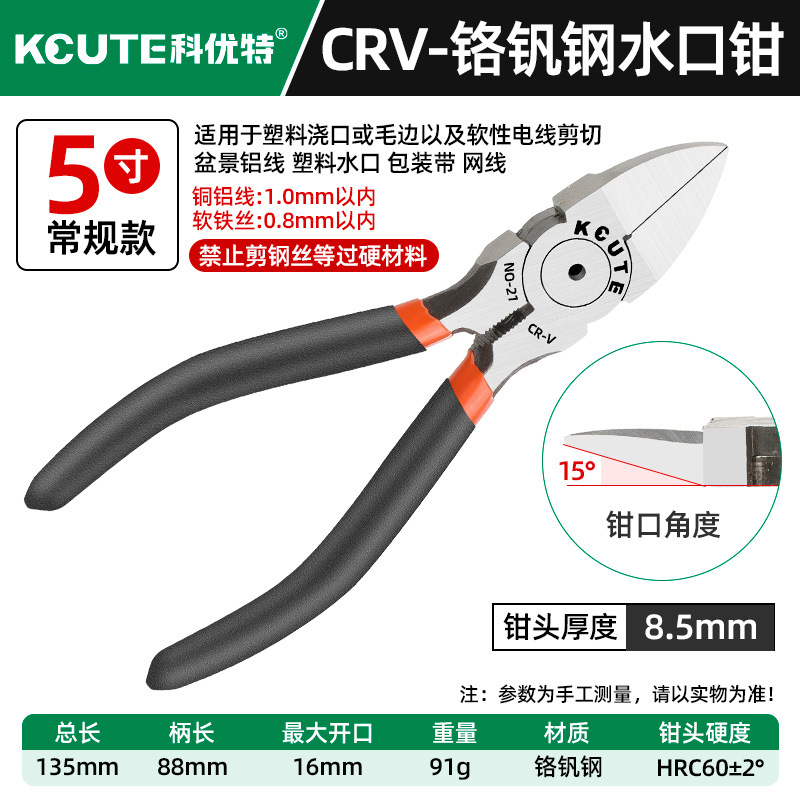 - 型號:升級版鉻釩鋼【5寸薄款】水口鉗