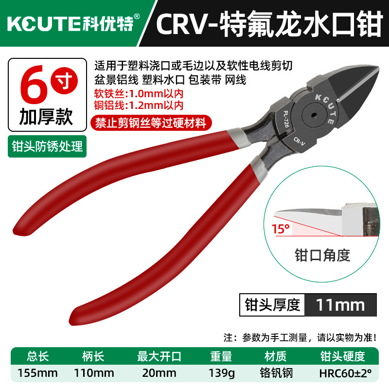 - 型號:旗艦款特氟龍【6寸厚款】水口鉗