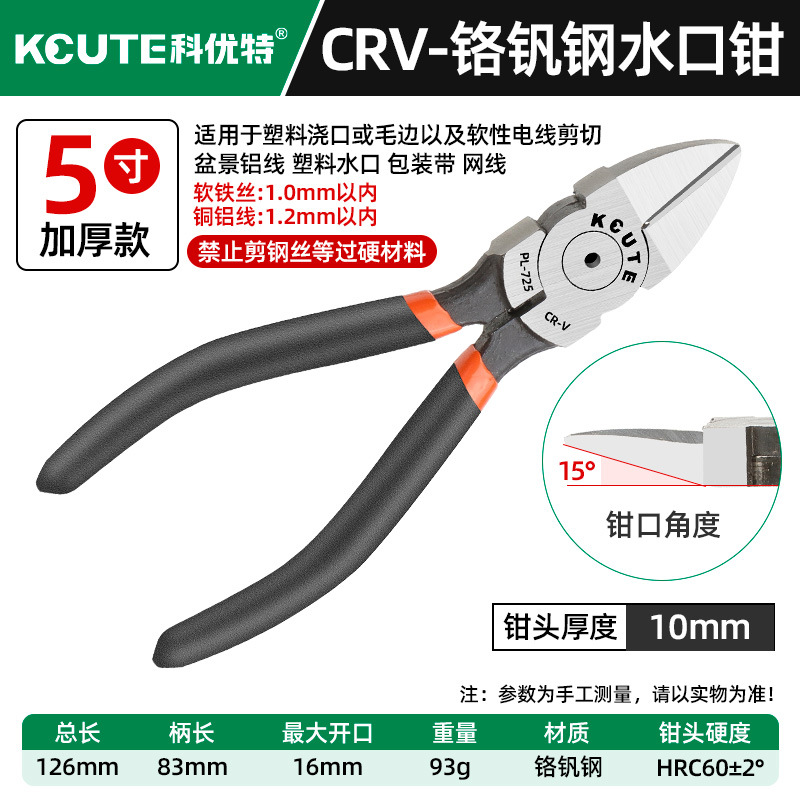 - 型號:升級版鉻釩鋼【5寸厚款】水口鉗