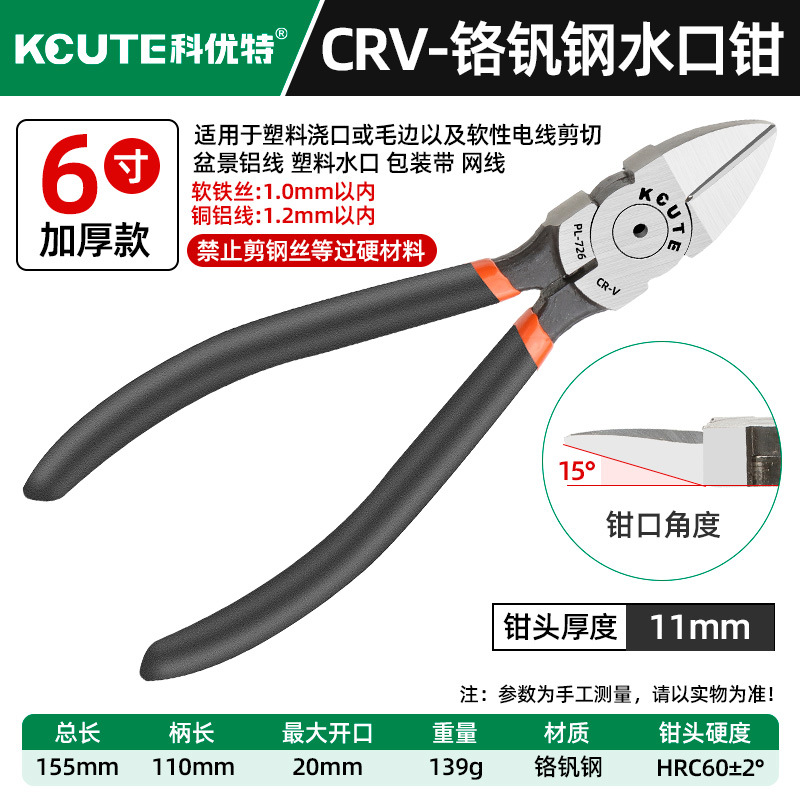 - 型號:升級版鉻釩鋼【6寸厚款】水口鉗