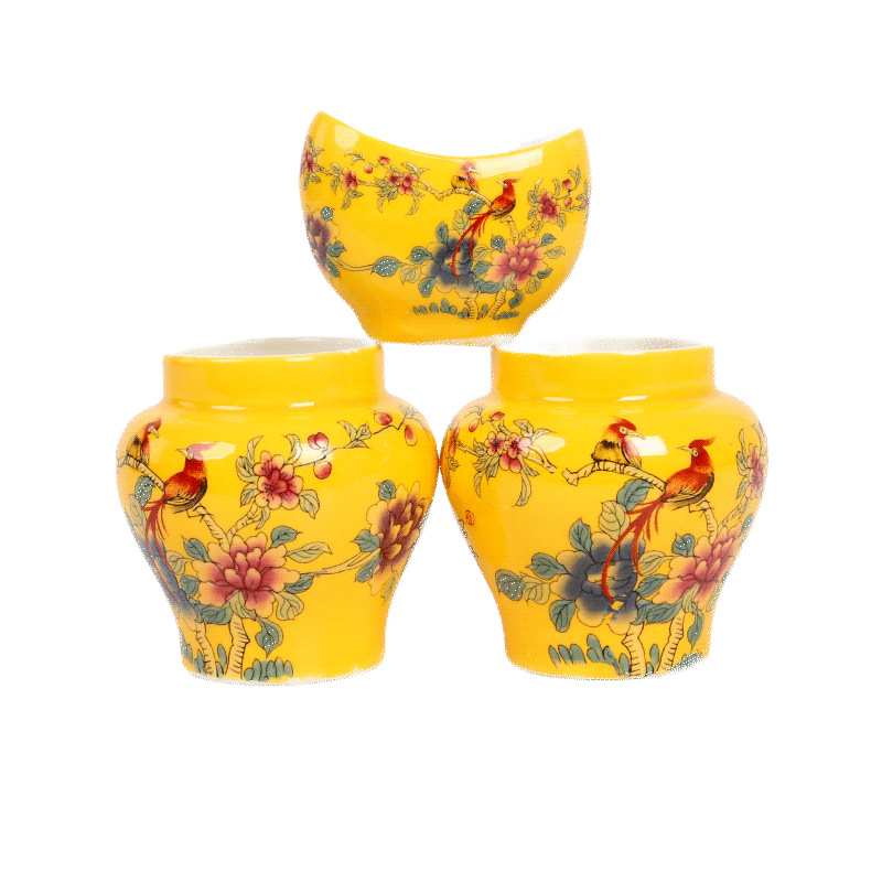 - 規格:魚簍杯黃底牡丹小鳥