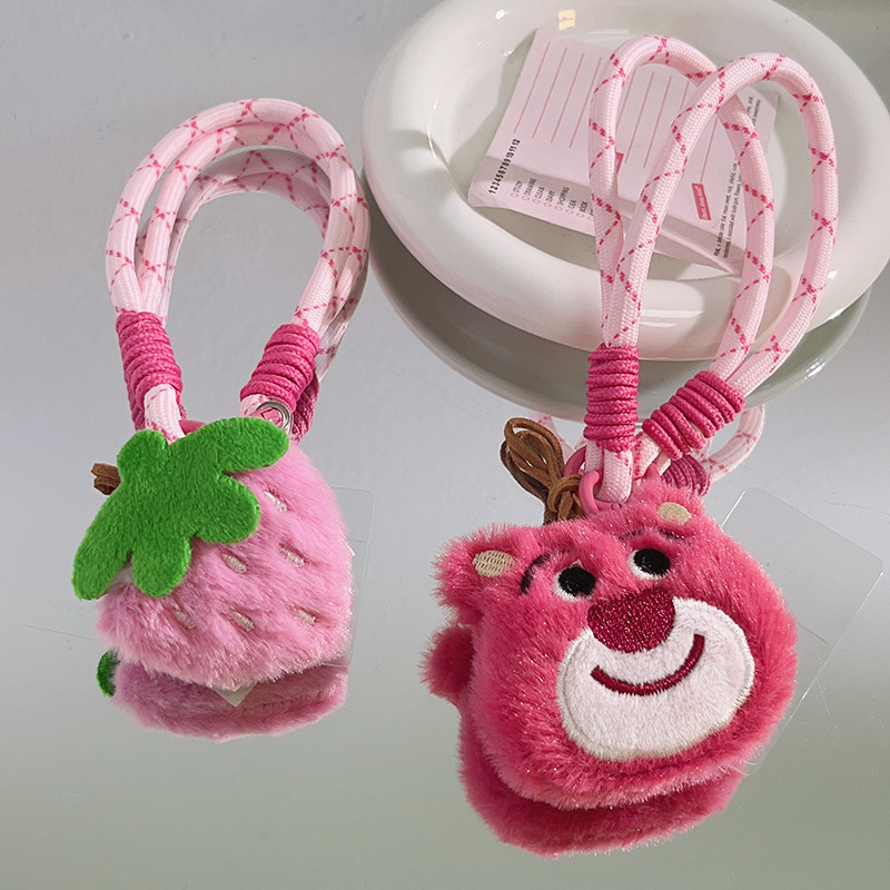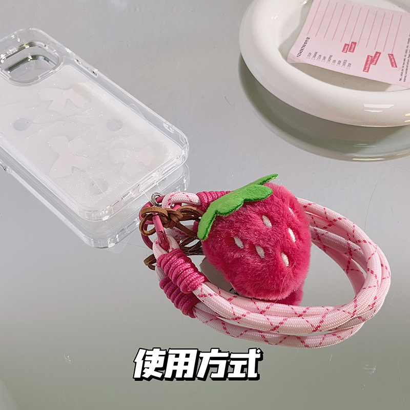 - 規格:少女粉綠葉草莓手機殼掛飾手機掛繩鏈條可愛充棉草莓熊公仔短掛件