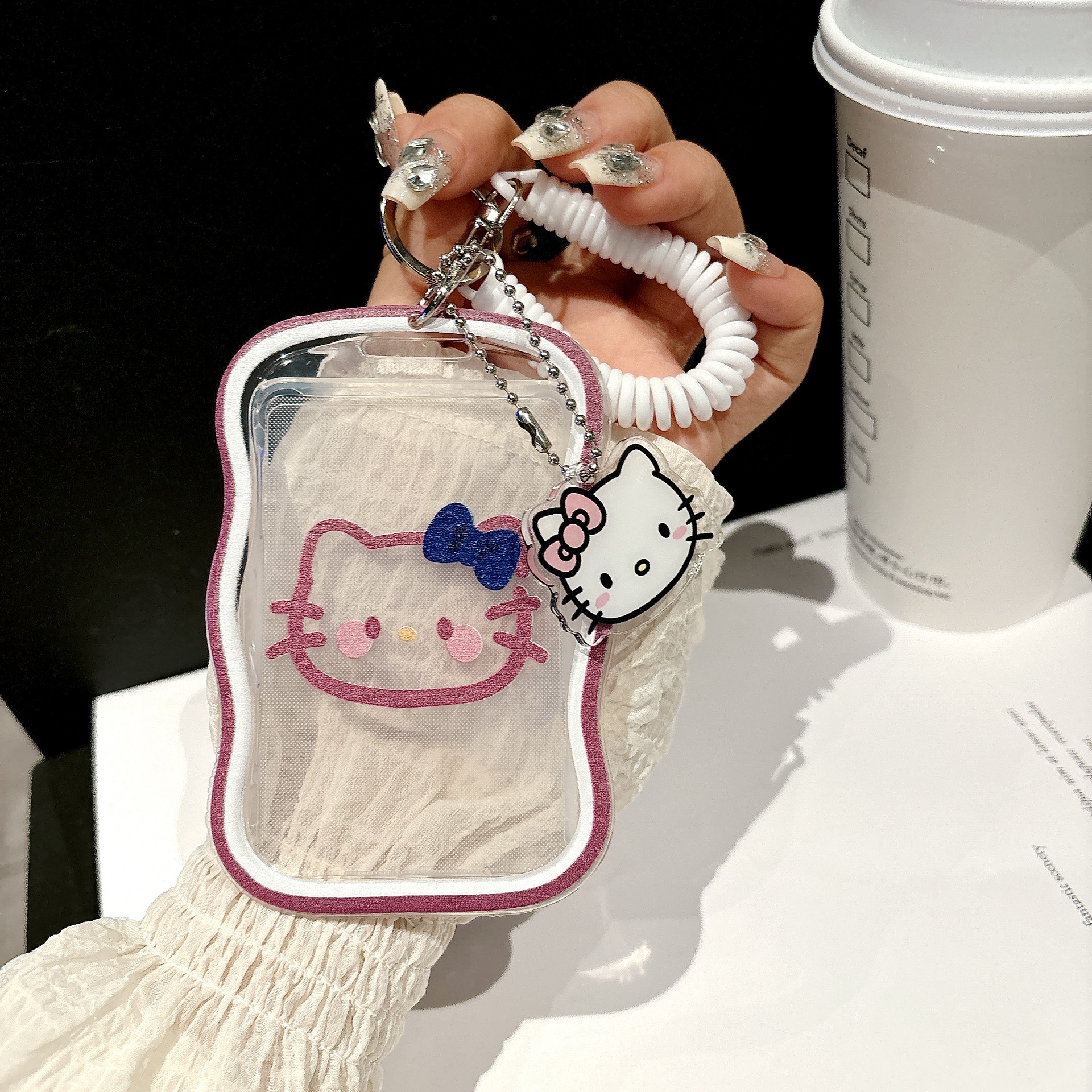 - 規格:藍色蝴蝶結凱蒂貓+彈簧繩+掛飾