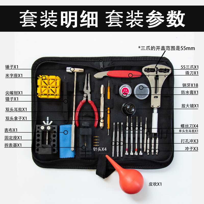 - Model: Watch Repair Tool 30-Piece (Large Three-Jaw)