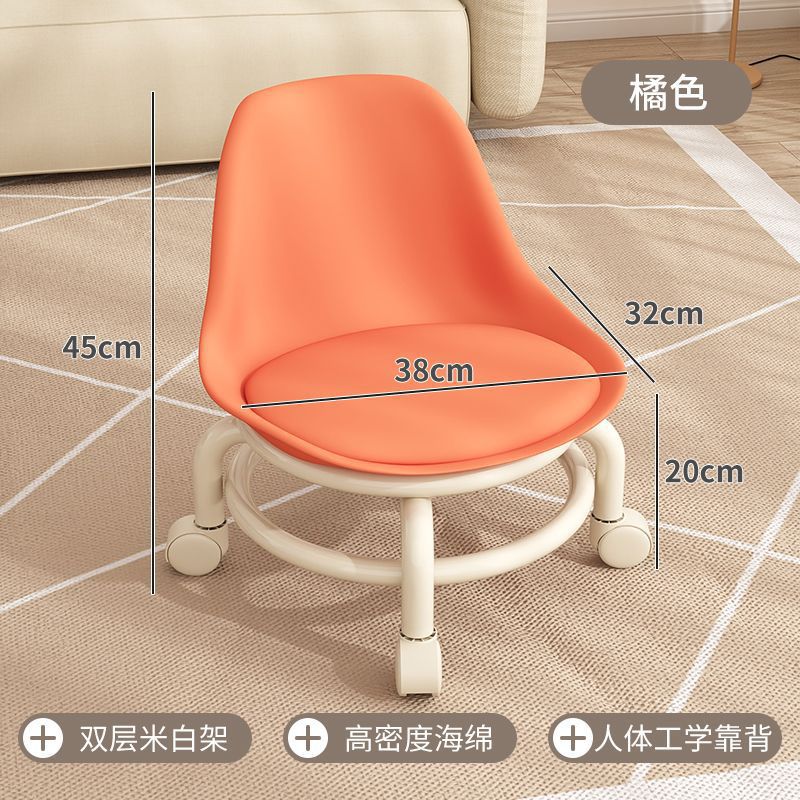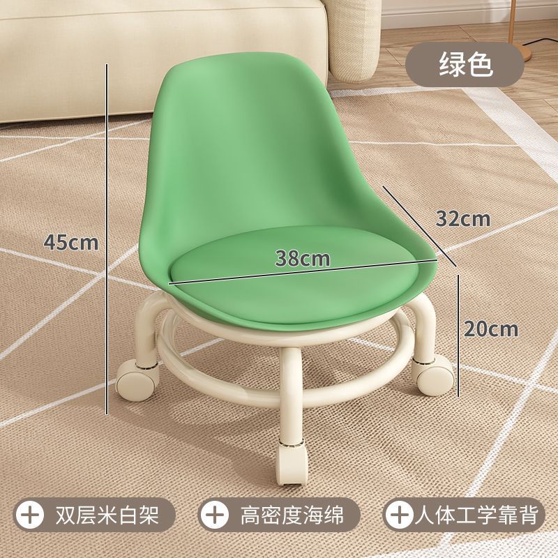 - Style: Wheeled low stool with backrest
