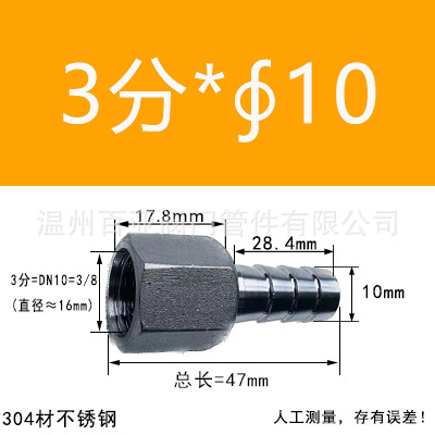 - 規格型號:【304】3分=DN10=3/8*【10mm】