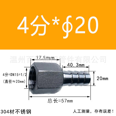 - 規格型號:【304】4分=DN15=1/2*【20mm】