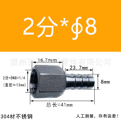 - 規格型號:【304】2分=DN8=1/4*【8mm】