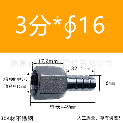 - 規格型號:【304】3分=DN10=3/8*【16mm】
