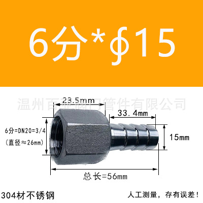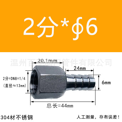 - 規格型號:【304】2分=DN8=1/4*【6mm】