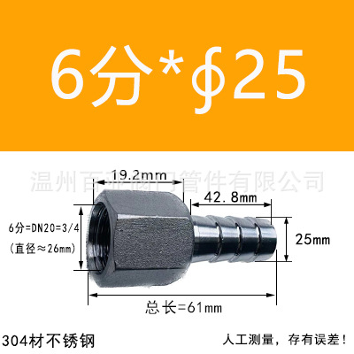 - 規格型號:【304】6分=DN20=3/4*【25mm】