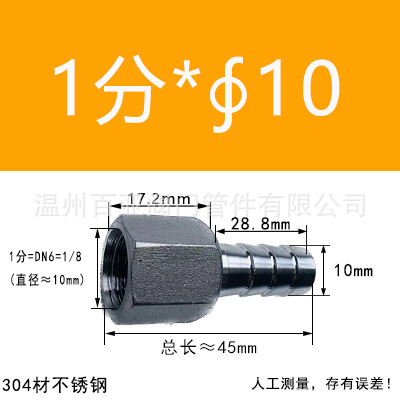 - 規格型號:【304】1分=DN6=1/8*【10mm】