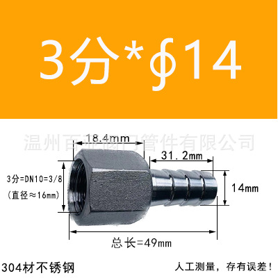 - 規格型號:【304】3分=DN10=3/8*【14mm】