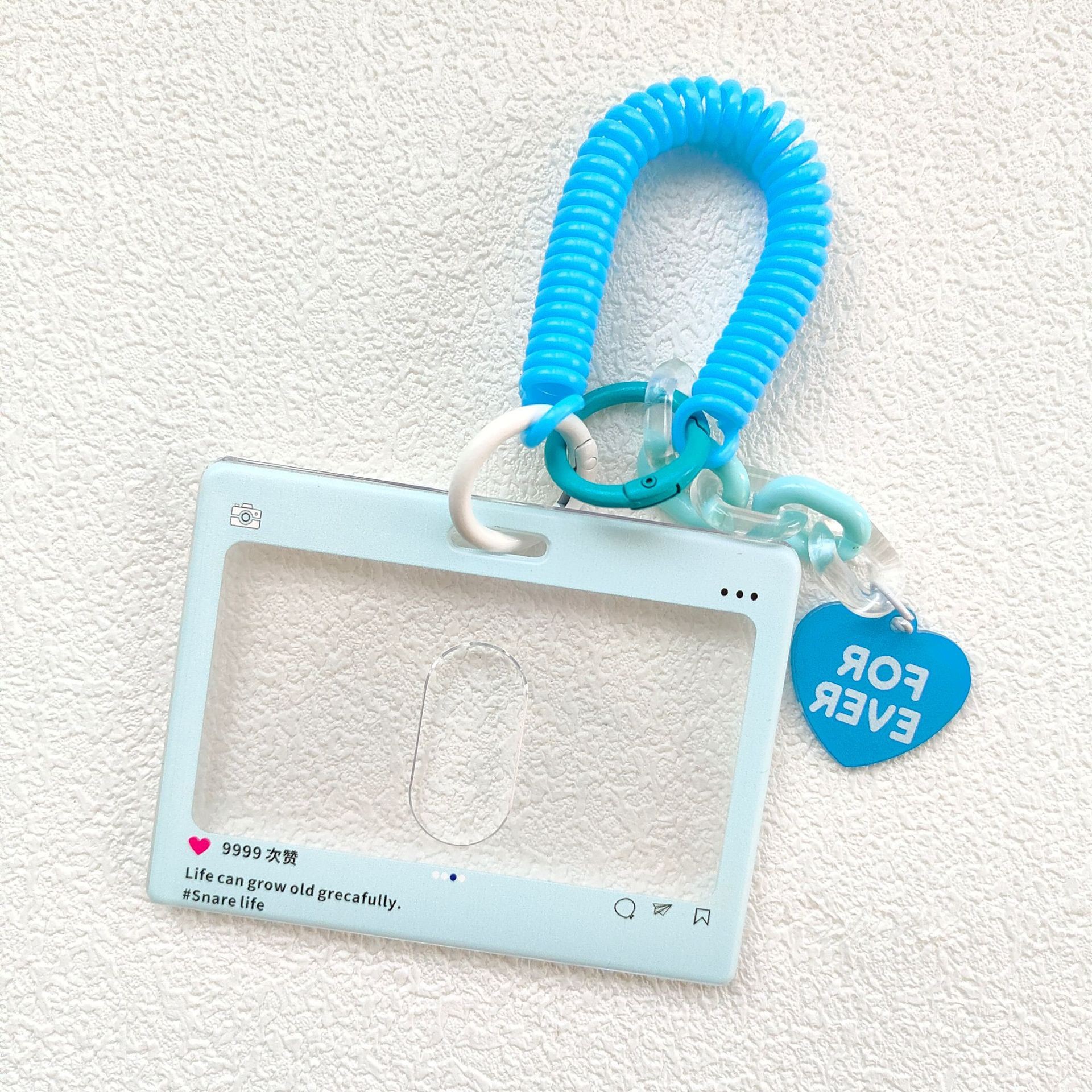 - 規格:橫版拍立得藍色+彈簧繩(愛心掛飾)