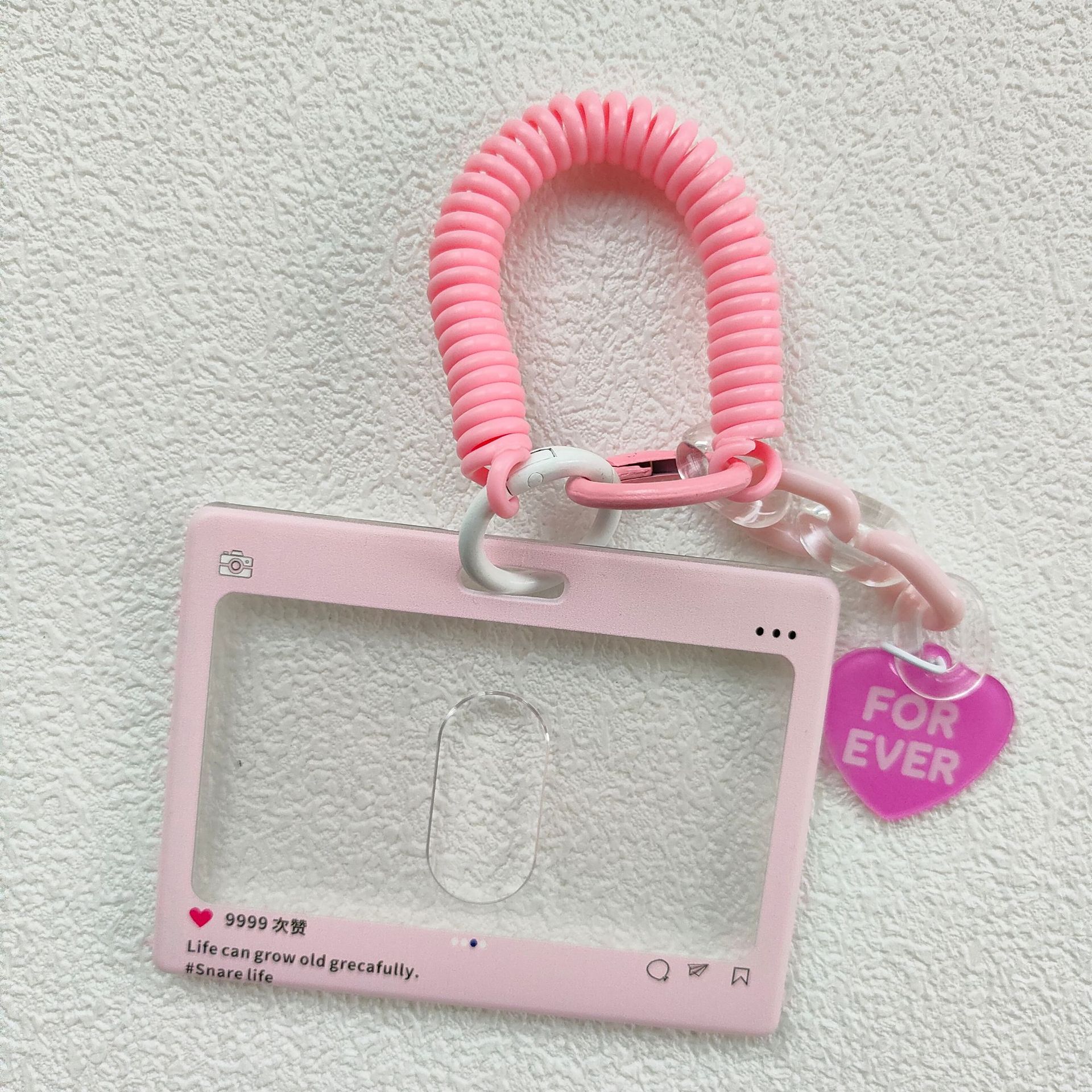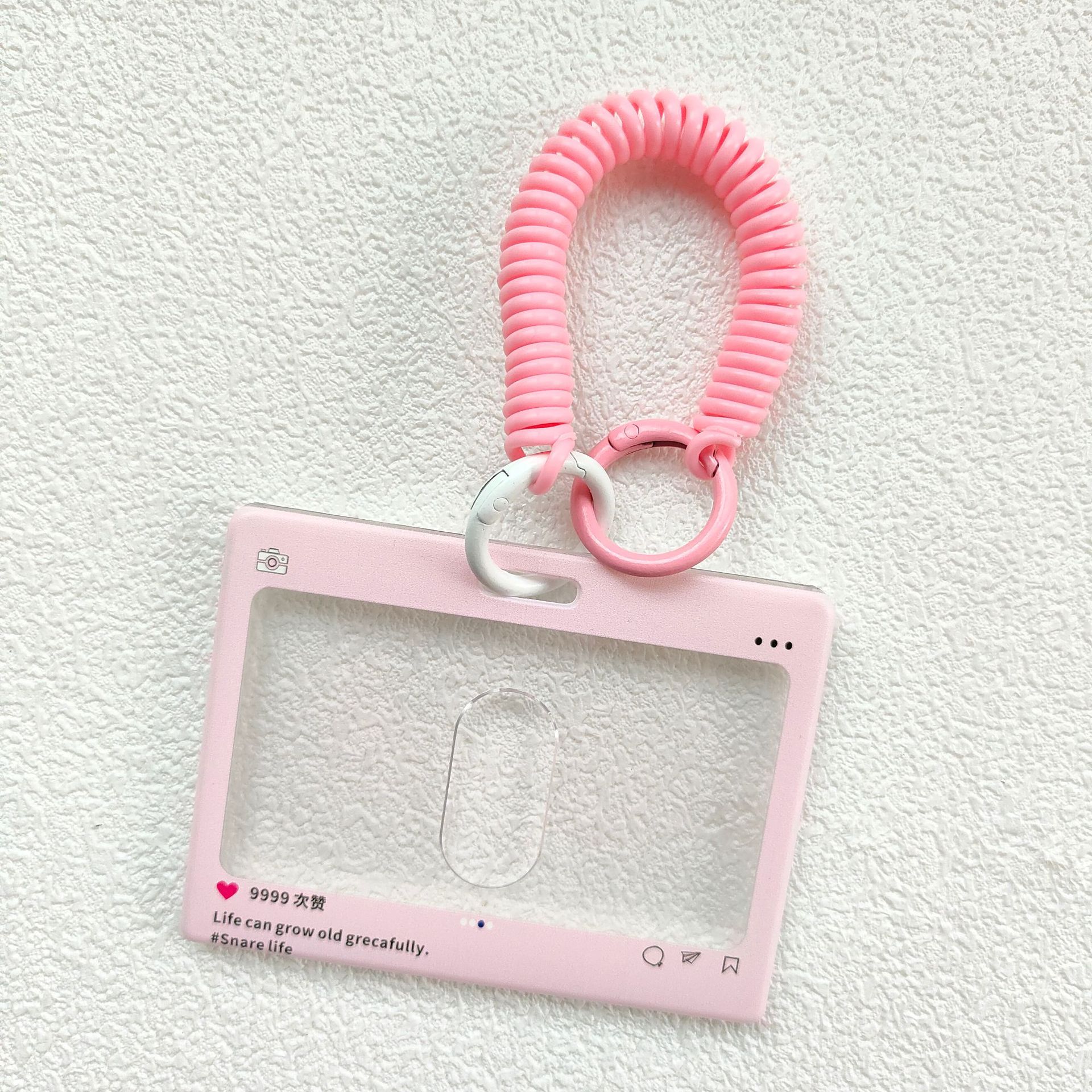 - 規格:橫版拍立得粉色+彈簧繩(愛心掛飾)