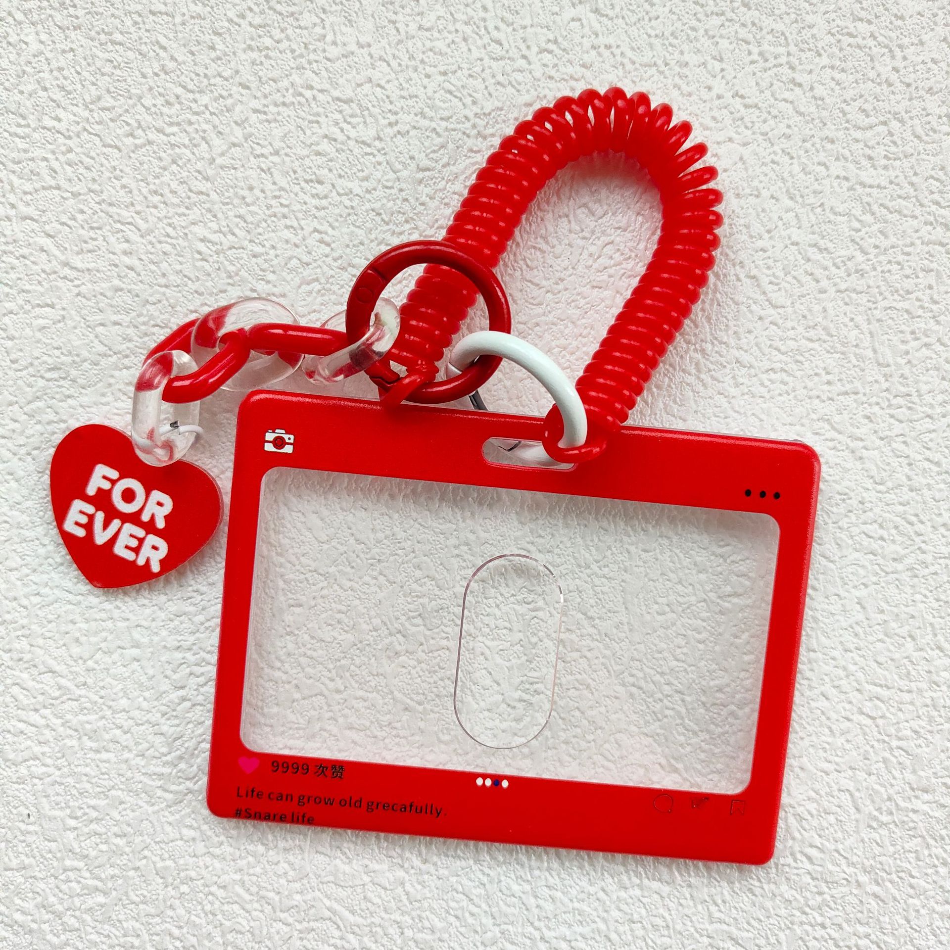 - 規格:橫版拍立得紅色+彈簧繩(愛心掛飾)