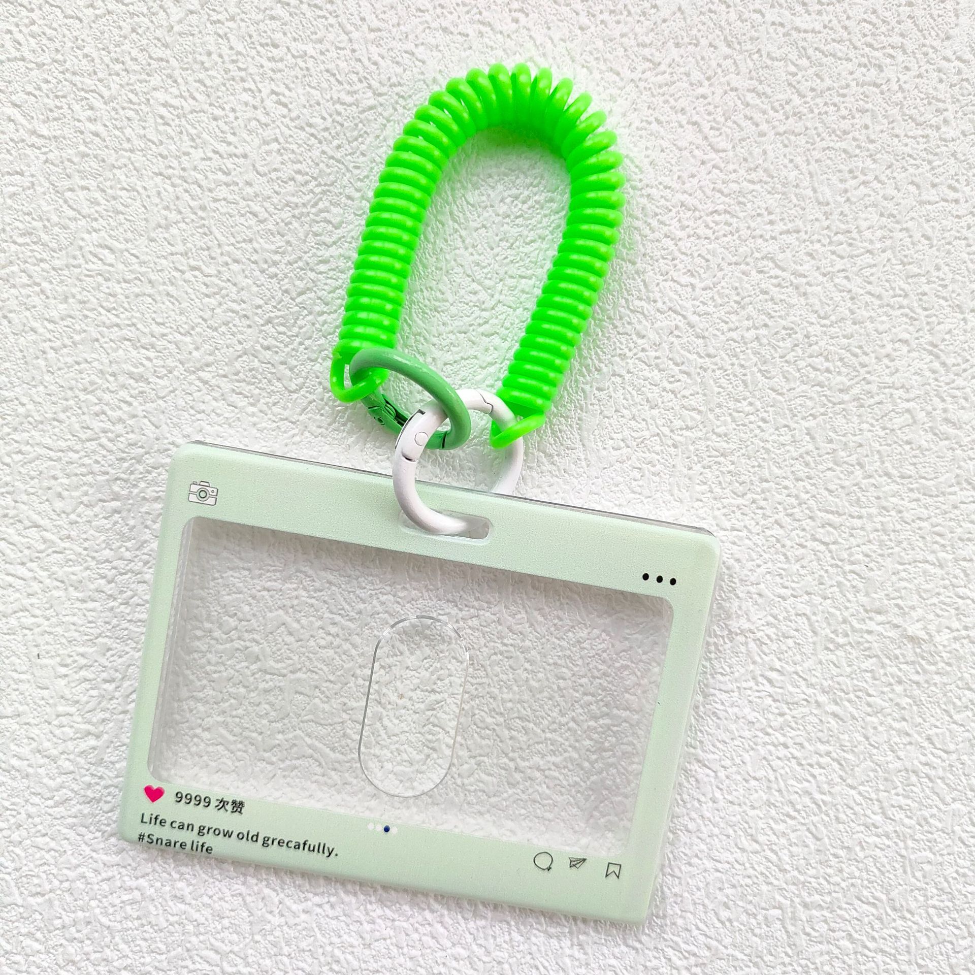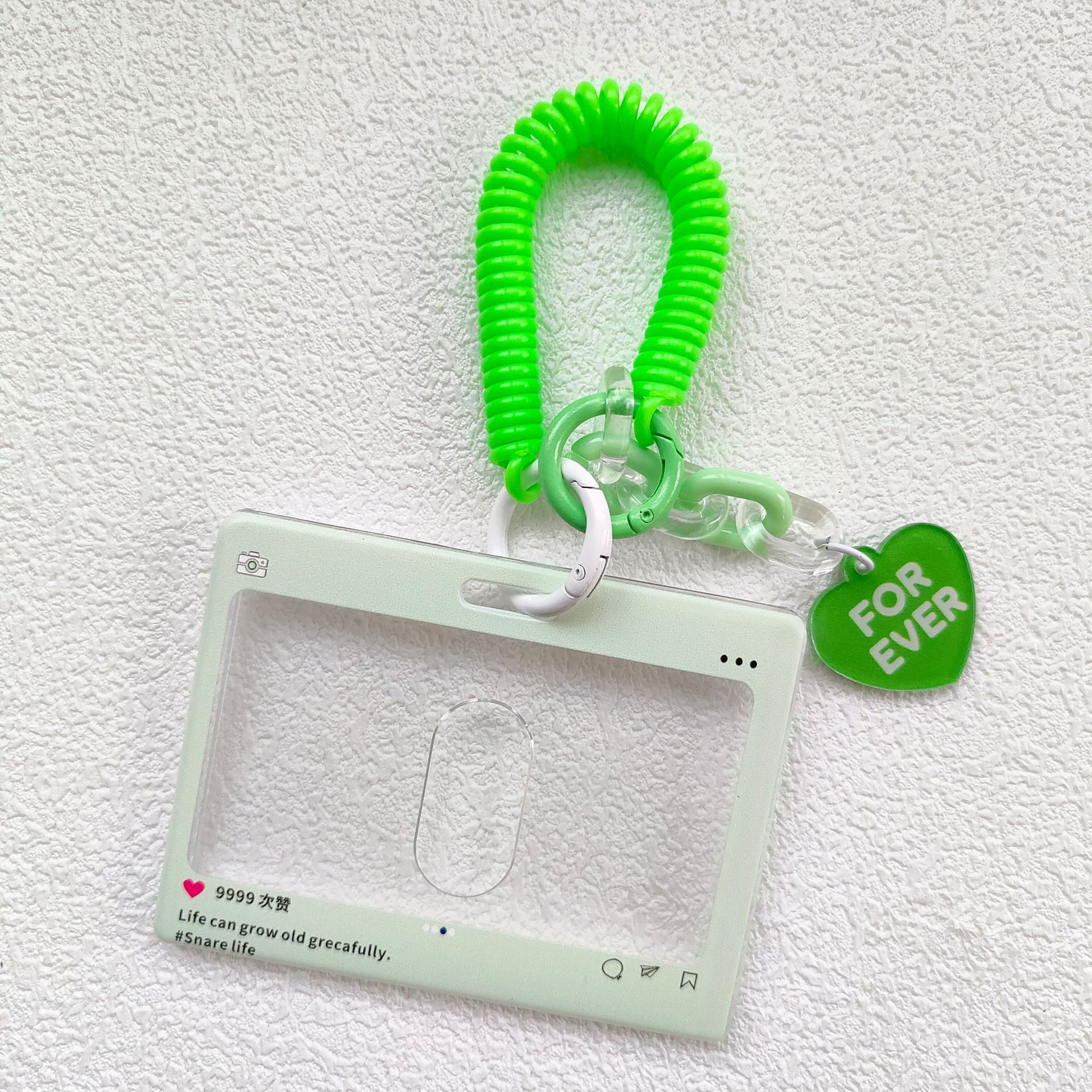 - 規格:橫版拍立得綠色+彈簧繩(愛心掛飾)
