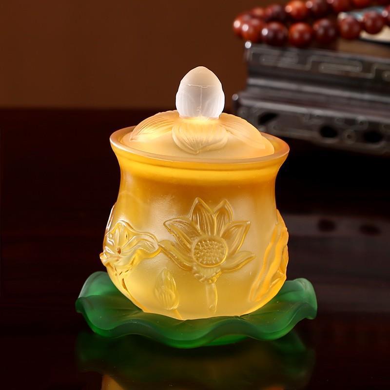 - Specification: Small Glass Lotus Cup (Amber Color)