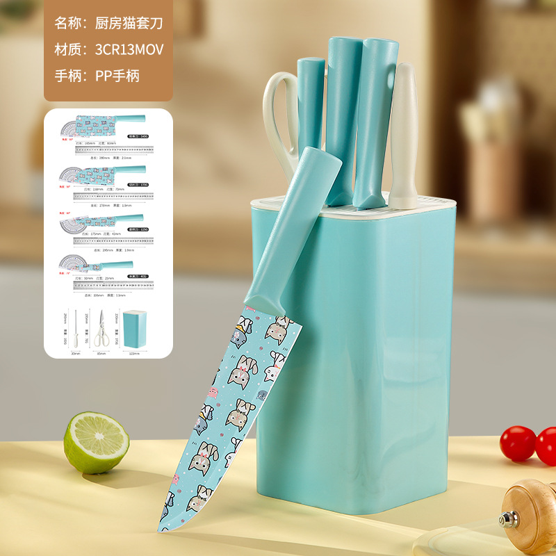 - 規格:貓喵塗層7件套(方刀座)藍