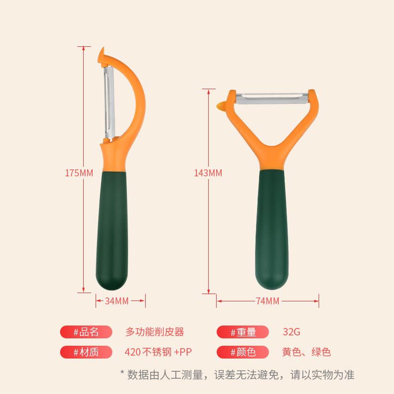 - 規格:不鏽鋼【Y刨】雙色柄(橙綠)