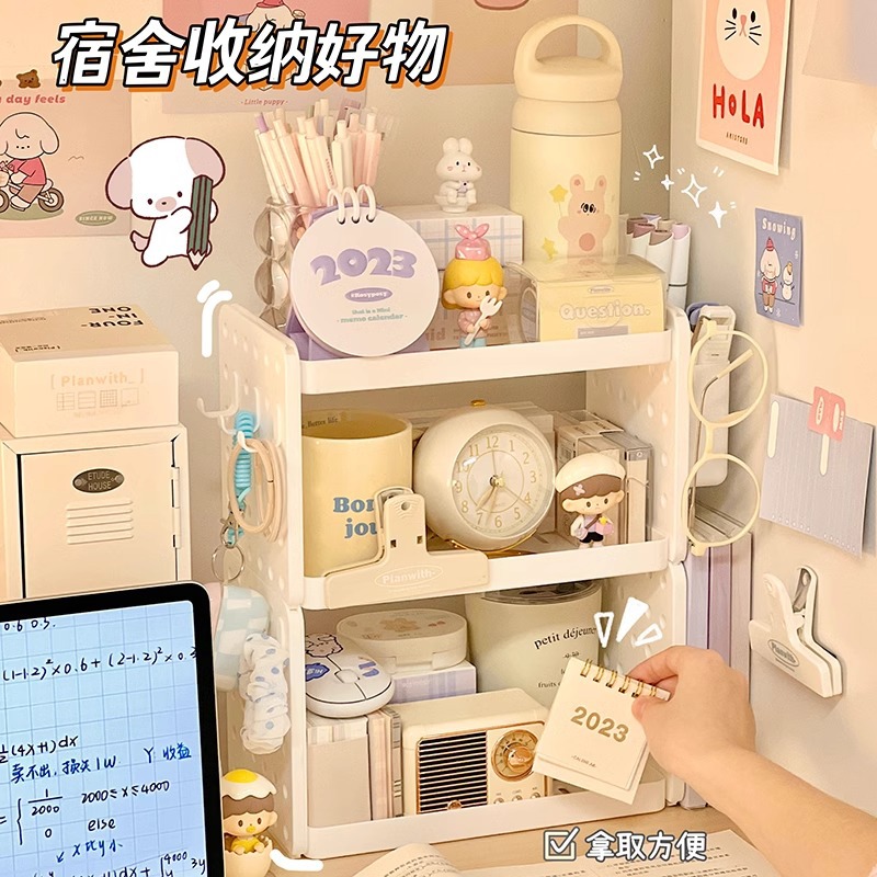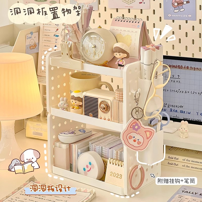- 層數(規格):白色2層1筆筒3掛鈎