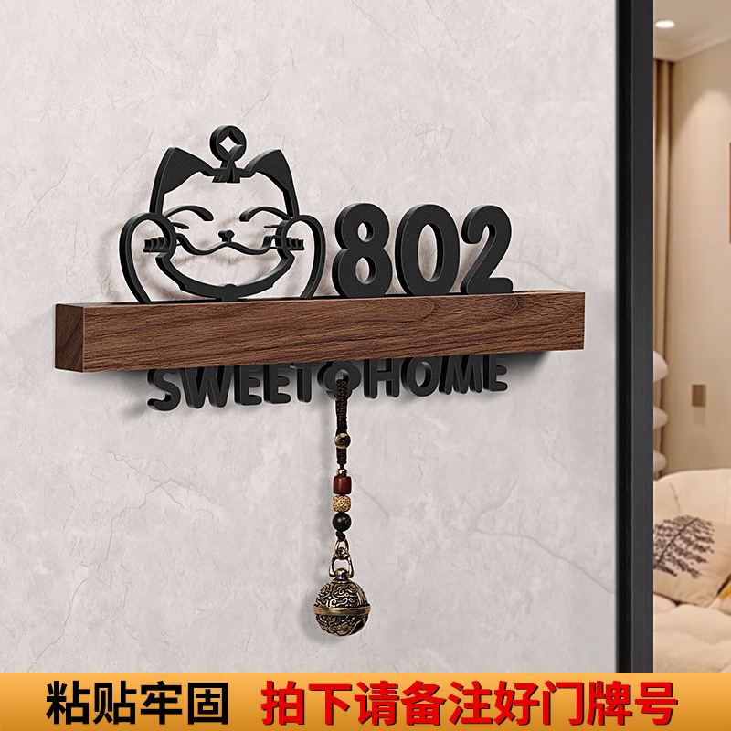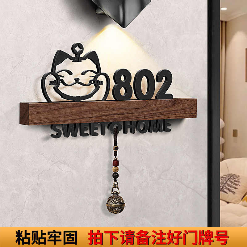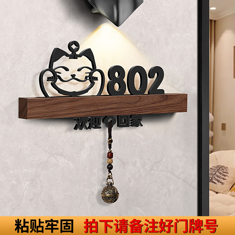 - 規格型號:胡桃木+招財貓+歡迎回家黑【帶燈/鈴鐺】;17x9cm